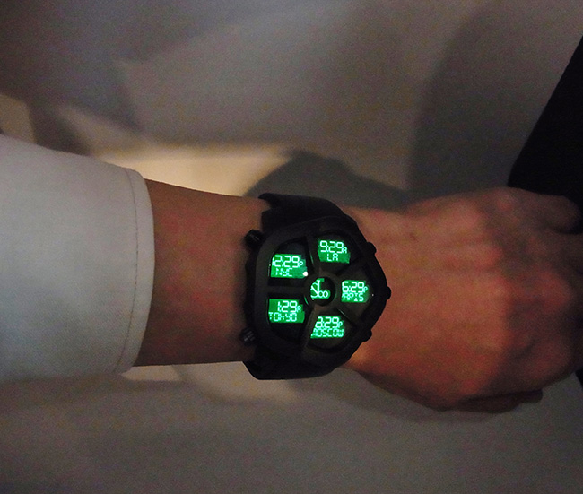 | ダイヤル | LCDスクリーン、7色(赤、オレンジ、黄、緑、青、紫、白)ディスプレイ、予め設定した20都市の時刻を表示、ローカルタイム・日付・バッテリー残量表示 |