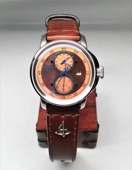 K5モデルは時計好きにはたまらないレギュレーター機能。時計の裏蓋には厚手のサファイアガラスが敷き詰められ、手に着けた時にサファイアガラスに光が入り、まるで海に浮かんだ時計のようです。